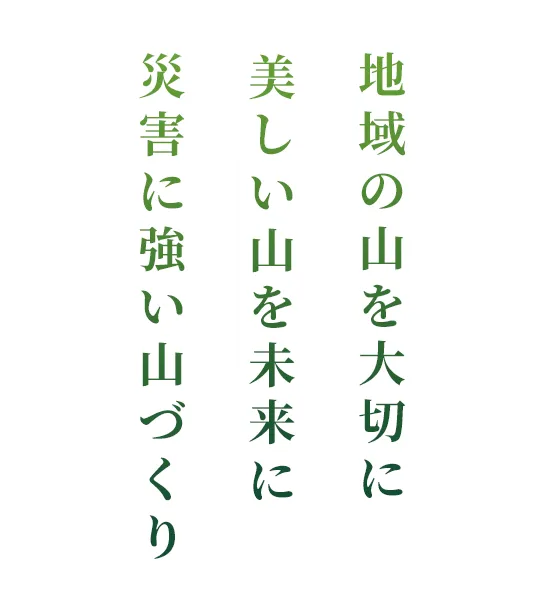 私たちが対象とする森林は、お客さまの大切な財産です。そのことを常に念頭に置き、確かな技術と経験をもつスタッフが丁寧に整えます。ご要望やお困りごとがございましたら、いつでもお気軽にご相談ください。